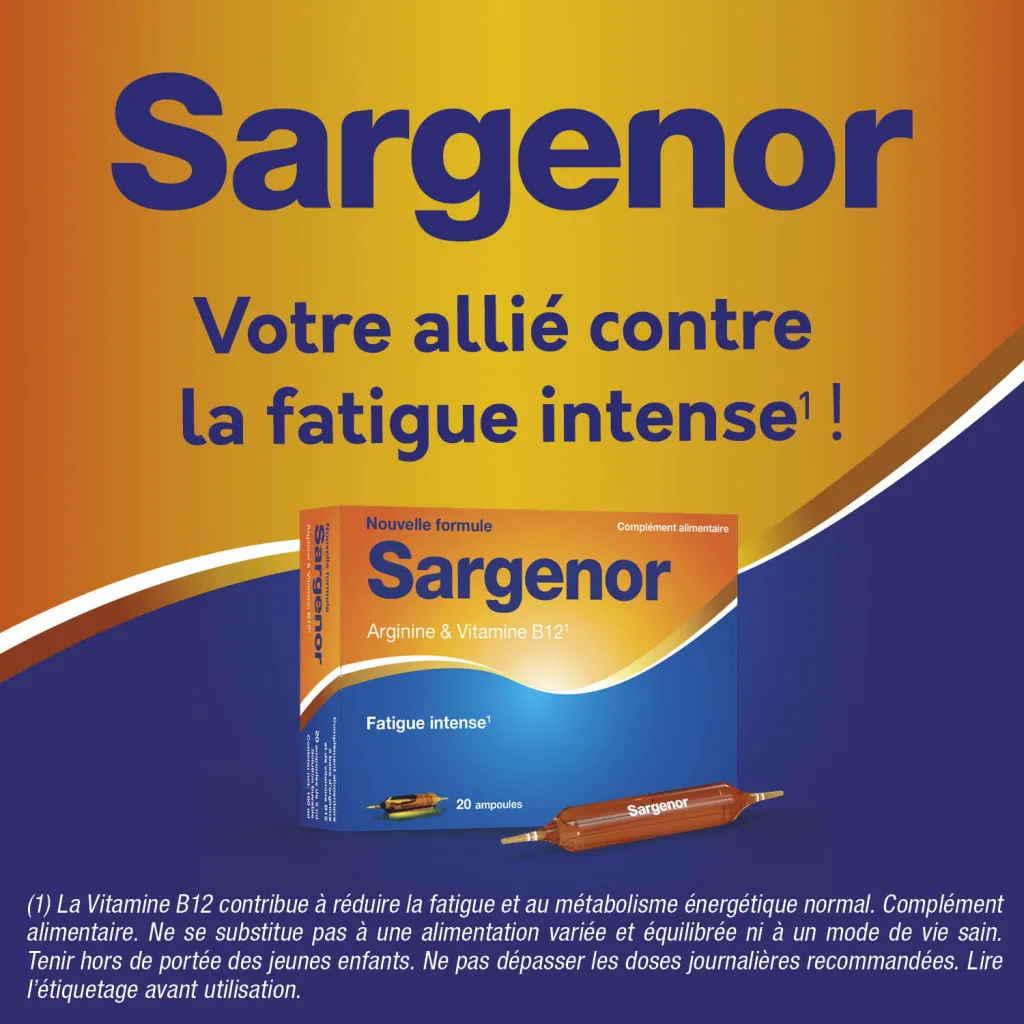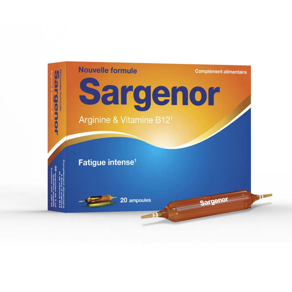 Les ampoules Sargenor contiennent de l’arginine et de la vitamine B12, pour soutenir l’organisme lors de périodes de fatigue intense.